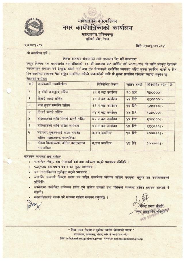कार्यक्रम संचालनको लागि प्रस्ताव आवहान सम्बन्धी सूचना