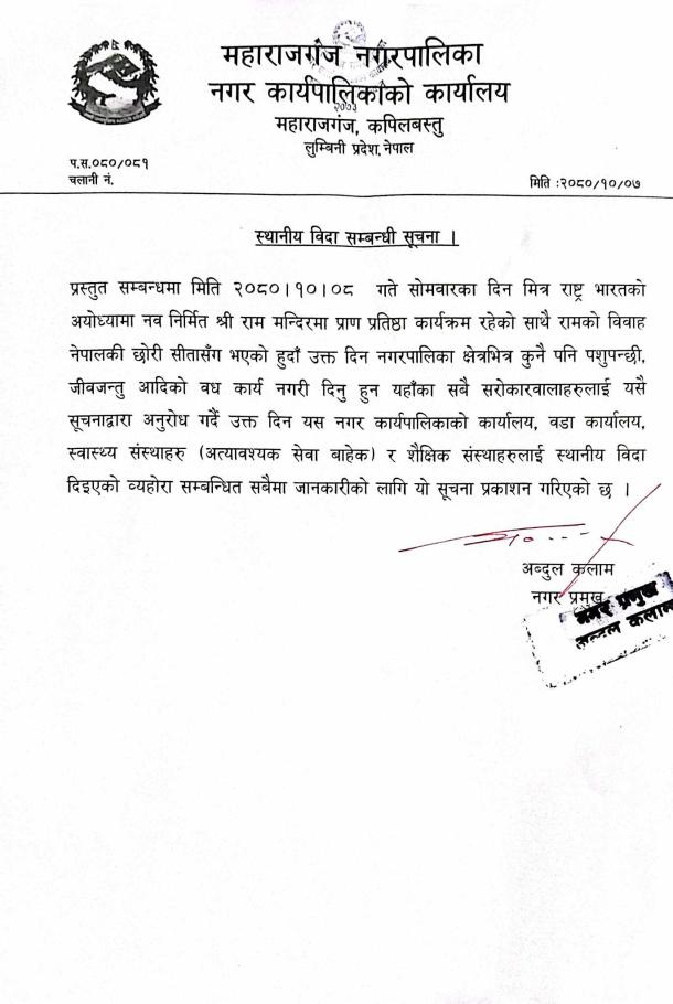 विदा सम्बन्धी सूचना
